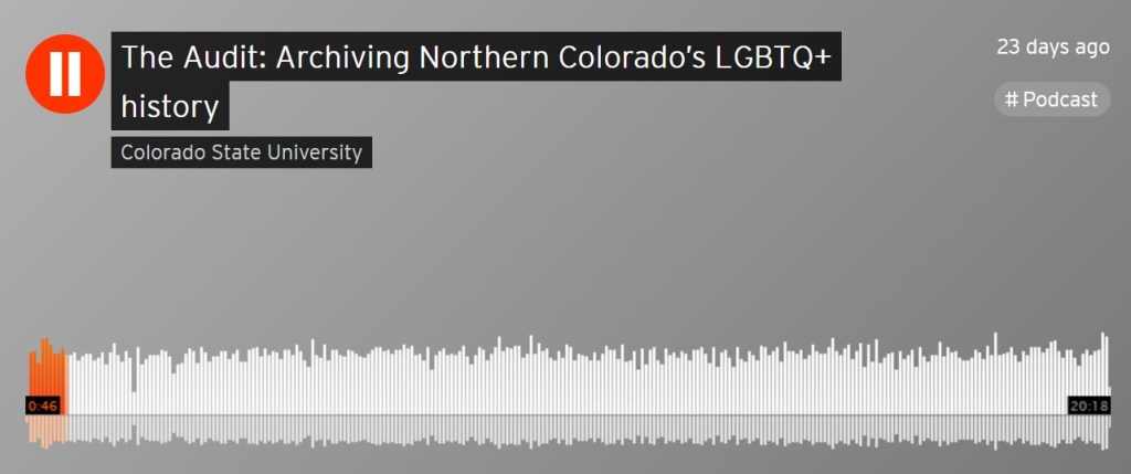 “Host Stacy Nick talks with the creator of the Queer Memory Project, CSU Associate Professor Tom Dunn, about the online archive dedicated to Northern Colorado’s queer history, and how the project aims to document everything from the death of Matthew Shepard to CSU’s first (and last) male homecoming queen to personal stories of what everyday life was like for members of Northern Colorado’s LGBTQ+ community.” Listen to the podcast here.